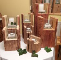 Holzskulpturen für den Alltagsgebrauch: Ob Kerzenständer, Lampe oder Flaschenöffner - das Material schmeichelt Augen und Händen. Und die Altholzobjekte setzen spannende Akzente. Noah Droxner begrüßt sie gerne in seinem Holzatelier.