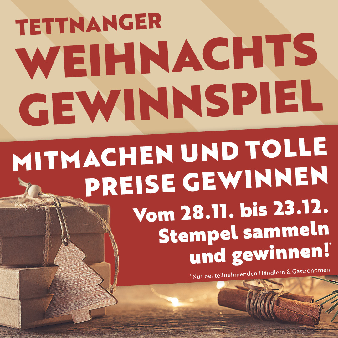 Denken Sie bei Ihren Weihnachtseinkäufen auch an die Tettnanger Geschenkgutscheine – ein schönes Geschenk, das Freude bereitet und unsere lokalen Geschäfte unterstützt.