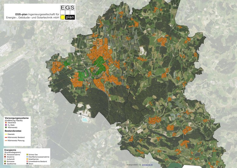Die im Plan dargestellten Versorgungsarten – beispielsweise ein Wärmenetz oder eine dezentrale Wärmeversorgung – sind Empfehlungen und keine Vorgaben.