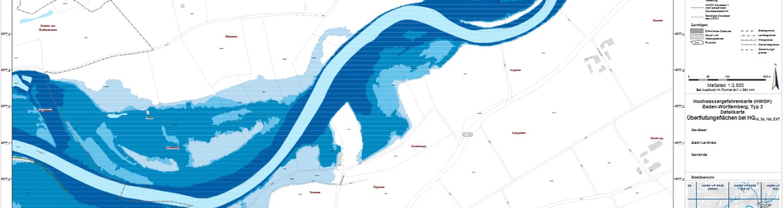 Die Kommunen und das Land Baden-Württemberg haben bis 2015 Hochwassergefahrenkarten (HWGK) für alle relevanten Gewässer erstellt. Sie liefern für über 11.000 km Gewässer konkrete Informationen über die mögliche Ausdehnung und Tiefe einer Überflutung, wenn sich ein 10-jährliches, 50-jährliches, 100-jährliches und ein extremes Hochwasser ereignen.