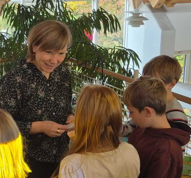 Mit der bundesweit bekannten Autorin Franziska Gehm ging es weiter: Ihre Lesung „Ada und die künstliche Blödheit“ begeisterte Schülerinnen und Schüler aus der Schillerschule und der Grundschule Laimnau. Die humorvolle, altersgerechte Geschichte vermittelte auf spielerische Weise erstes Wissen über Künstliche Intelligenz – und zeigte zugleich ihre Grenzen auf, etwa bei der Frage: „Welche Farbe hat mein Pullover?“.